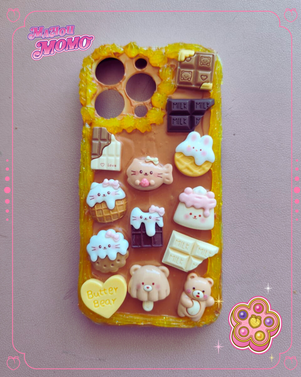 Funda IPhone 13 pro con diseño de chocolates y gatitos/ositos.