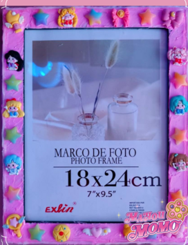 Marco cuadro 18x 24cm con diseño de magical girls en color rosado y transparencia.