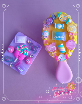 - Mini cepillo de pelo color amarillo con decoración de labubus y perlas